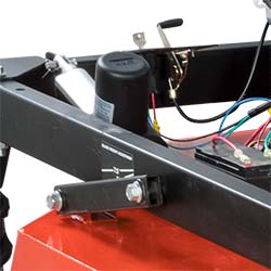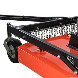 Make easy adjustments to the cutting height (from 4" to 7.5") from your tow vehicle. A battery powered actuator does the work, allowing you to change mowing heights on the fly, without stopping. |