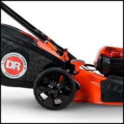 The performance of gas with the convenience of clean, quiet battery power! Allows you to mow for up to 60 minutes on a single charge. Add an extra battery to your order so you can have a freshly charged one ready and you'll DOUBLE your run time to 2 hours! (Select either 1 or 2 batteries at the top of this page). |