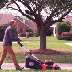 The performance of gas with the convenience of clean, quiet battery power! Allows you to mow for up to 45 minutes on a single charge. Add an extra battery to your order so you can have a freshly charged one ready and you'll DOUBLE your run time to 1.5 hours! (Select either 1 or 2 batteries at the top of this page). |