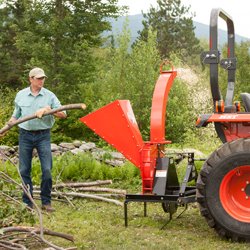 Put your Category 1 tractor to work! Tear through hardwood branches up to 4.75" in diameter. Big hopper accepts side branches to minimize pruning. PTO shaft included. Extended discharge chute available. |
