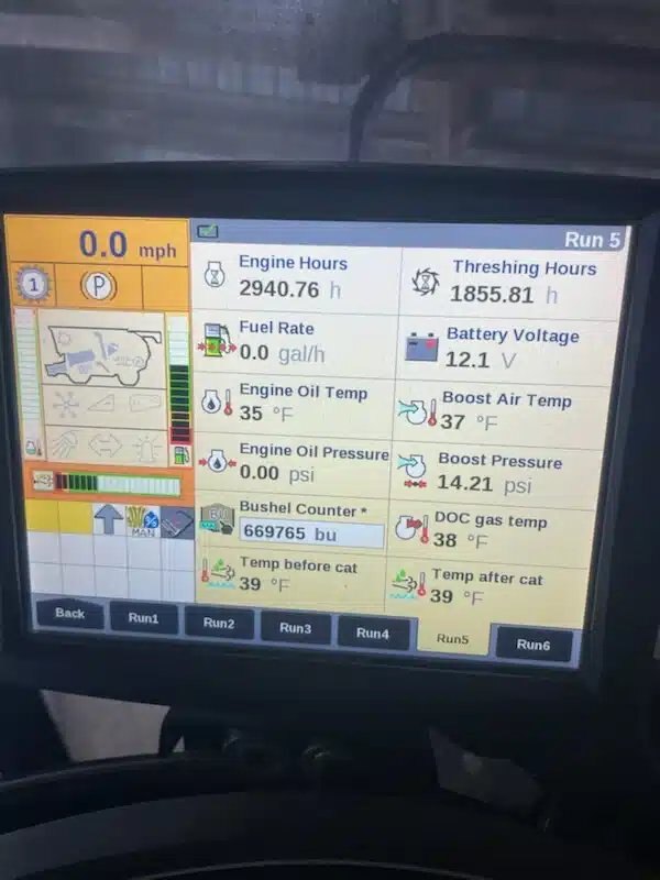 Luxury Cab, Leather. Field tracker. Hi wear transition cone and rotor. Large wire/small wire Folding Bin Extensions. Electric Sieve Adjustment. Rear hitch. Auto steer. Included HID lighting. Front tires 900x60R32 Michelin. Rear tires 600x65R28 Michelin.