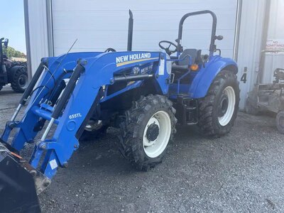 Used ROPS Power Shuttle with Non self levelling New Holland 655TL loader. EURO Quick Attach. 72 inch bucket. 540 PTO. Dual Remotes. Three Point Top...