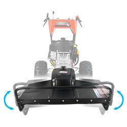 30" Wide-Cut Pivoting Deck The 30" deck is wide enough for fast field clearing, but is still very maneuverable. Unlike rigid, fixed decks found on some mowers, the DR deck pivots from side to side, allowing it to follow the contours of rough terrain. This feature minimizes scalping and improves traction. |