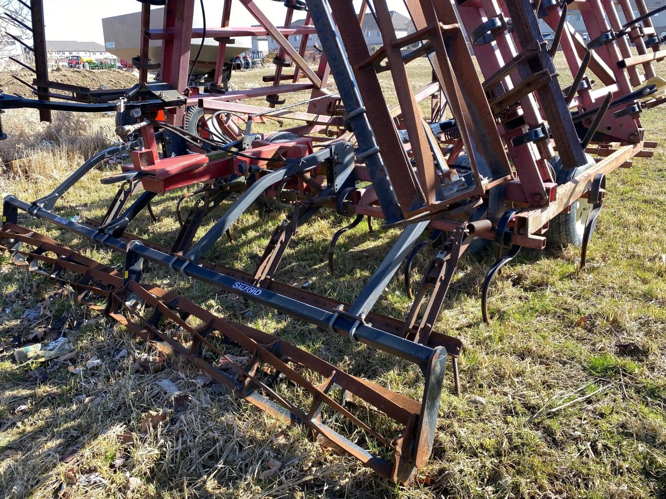 S-shaped tine, walking-beam axles, in tandem, Single basket with clod-breaker bar, with rear hitch and rear hydraulic couplers